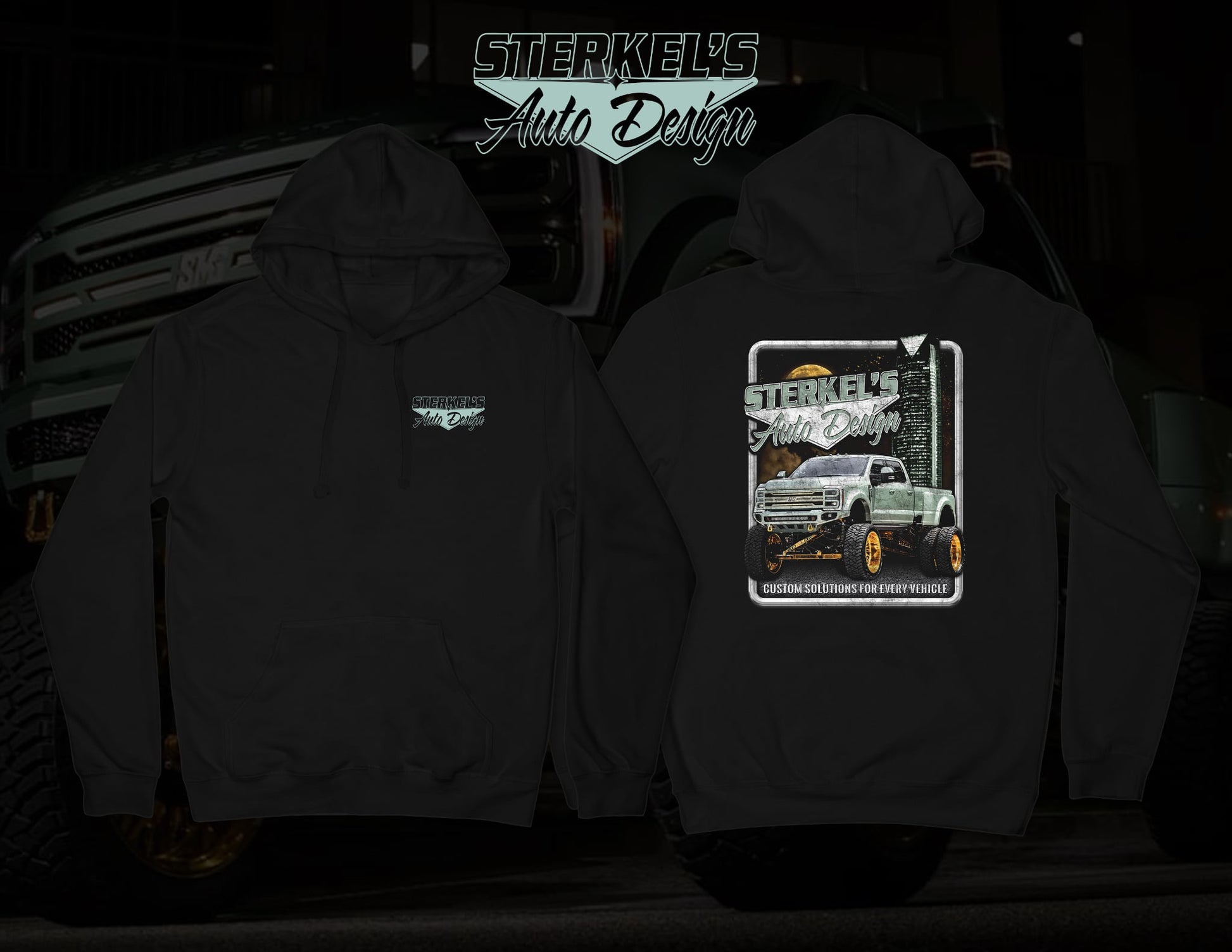 Engineered for everyday wear, this hoodie features iconic imagery of Sterkel's Auto Design's signature F450 build alongside the distinctive Oklahoma City skyline. Premium comfort meets automotive passion in a single piece.